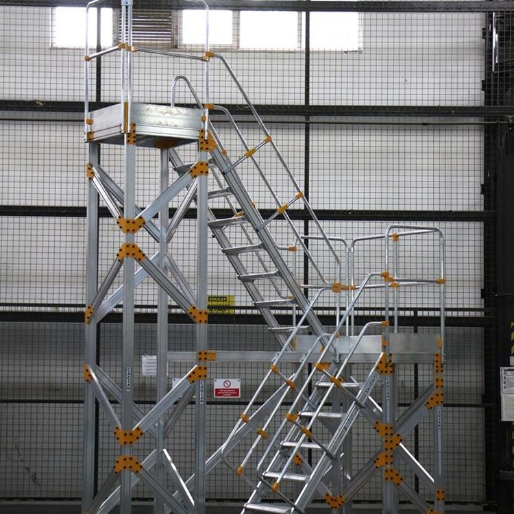 Konstrukcija je izrađena od visokootpornih i dugotrajnih aluminijskih sigma profila, spojenih mehaničkom metodom. Platforme zadovoljavaju standarde TÜV SÜD EN 131-7 te pružaju sigurno radno okruženje u skladu s propisima zaštite na radu.