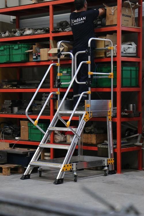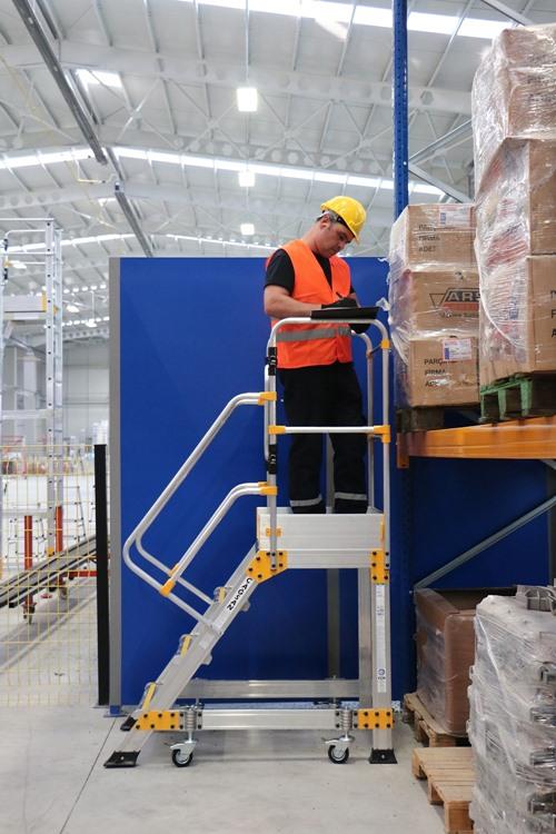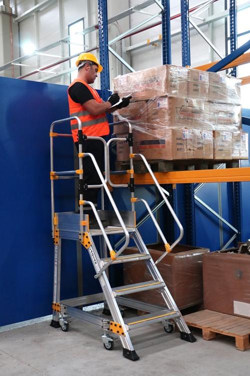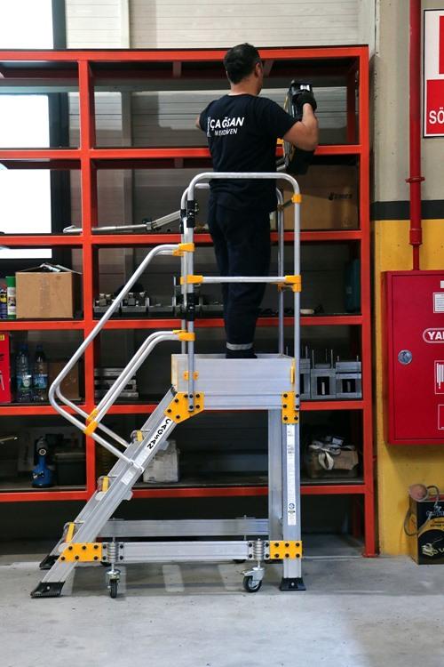 Zahvaljujući ugrađenom opružnom sustavu kočenja, platforma se automatski učvršćuje na tlo čim korisnik stupi na nju. Nakon završetka rada, platformu je moguće jednostavno premjestiti pomoću kotača, što omogućuje brzu i praktičnu upotrebu u različitim radnim okruženjima.
