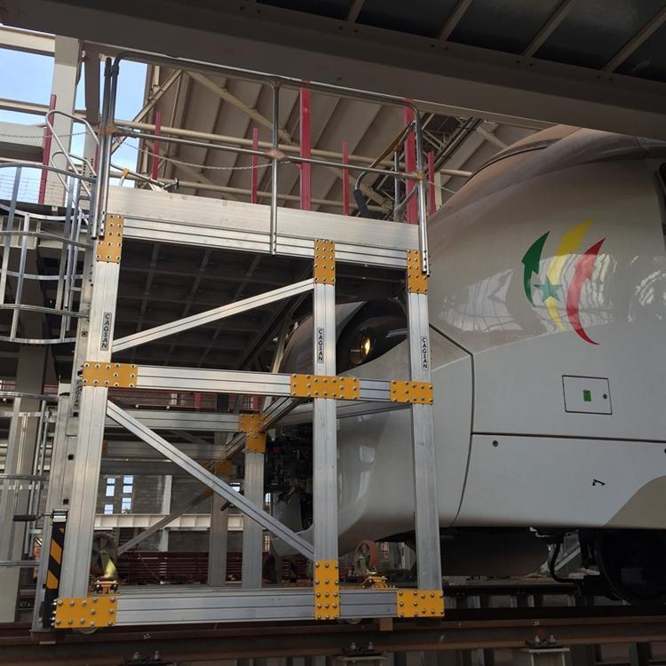 Izrađuje se pod kutom tako da potpuno okružuje prednji dio vlaka. Širina, duljina i visina platforme mogu se izraditi prema zahtijevanim dimenzijama. Može biti opremljena bočnim proširenjima u cjelovitom ili podijeljenom obliku. Dodavanjem kliznih dijelova omogućuje se uporaba s različitim tipovima vlakova. Dodatne pristupne ljestve ili mobilne platforme mogu se spojiti pomoću stezaljki (klampera).