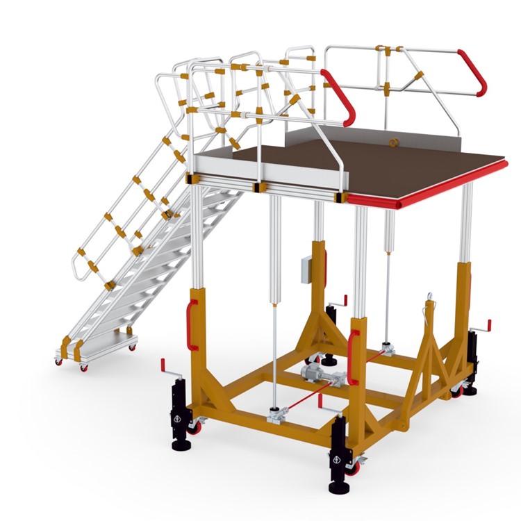 Stalci su izrađeni kao aluminijsko tijelo na čeličnoj šasiji te su istodobno lagani i stabilni. Zahvaljujući vučnom spoju mogu se lako premještati po hangaru ili apronu, što omogućuje brzu prilagodbu različitim servisnim zadacima.