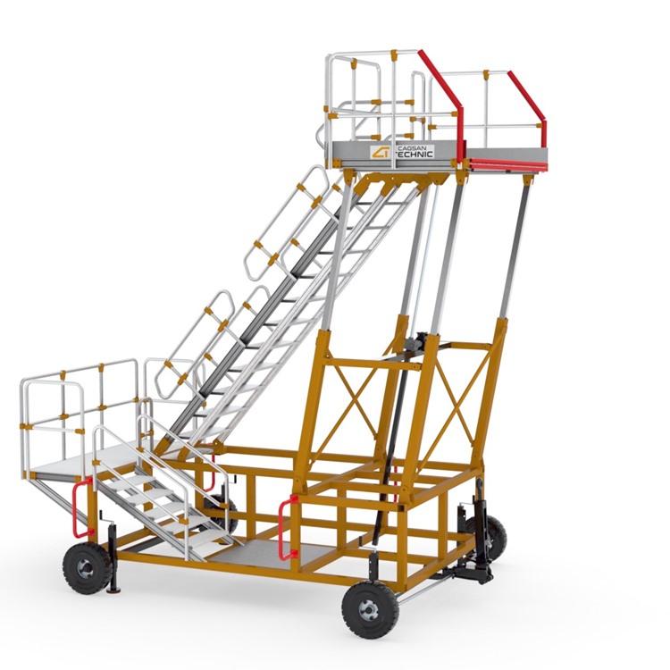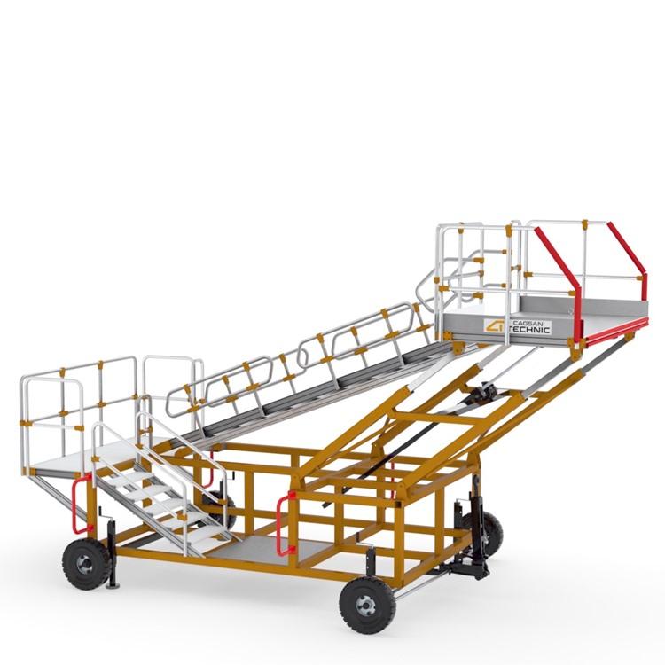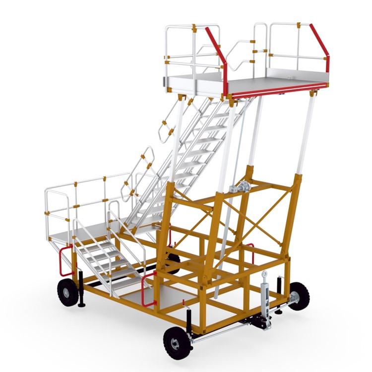 FWD i pristupni stalak za putnička vrata dizajniran je za siguran i praktičan pristup prednjem dijelu zrakoplova (FWD) i putničkim vratima tijekom održavanja i servisa.