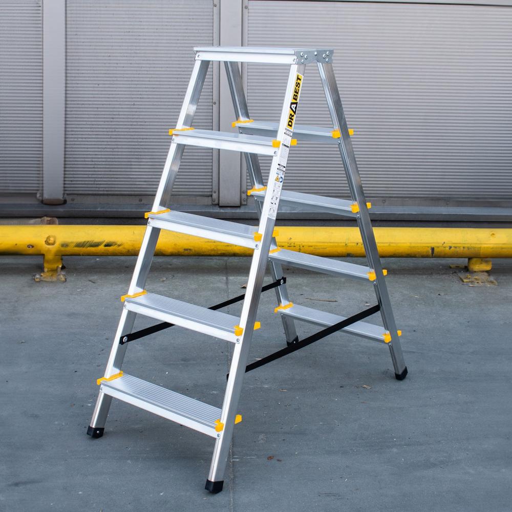 Aluminijske samostojeće ljestve s obostranim pristupom kompaktnih su dimenzija i vrlo praktične za korištenje i skladištenje. Zbog nosivosti od čak 150 kg, osim za kućnu, mogu biti i za profesionalnu uporabu. Širina gazišta od 80 mm omogućuje duže stajanje na ljestvama bez umaranja, a platforma je dizajnirana tako da se na ljestvama može i sjediti prilikom obavljanja nekog posla. Platforma i gazište su osigurani od klizanja, a stope protiv proklizavanja i prevrtanja.